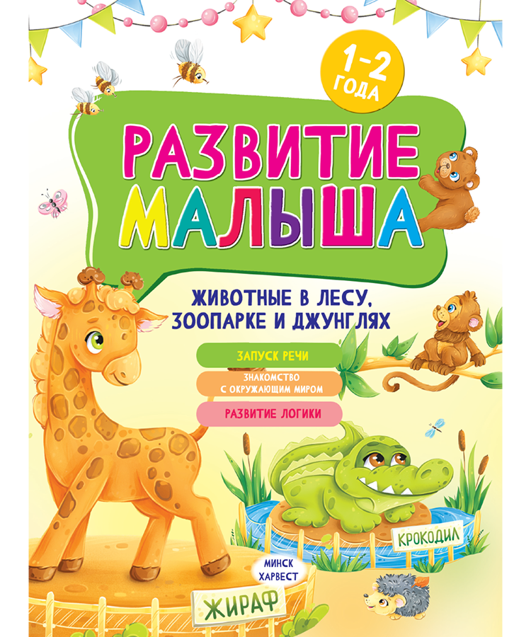 Развивающая книга «Животные в лесу, зоопарке и джунглях» — это отличная первая книга малыша. Книжка станет прекрасным подарком ребенку на 1 год. Задания порадуют как девочек, так и мальчиков.