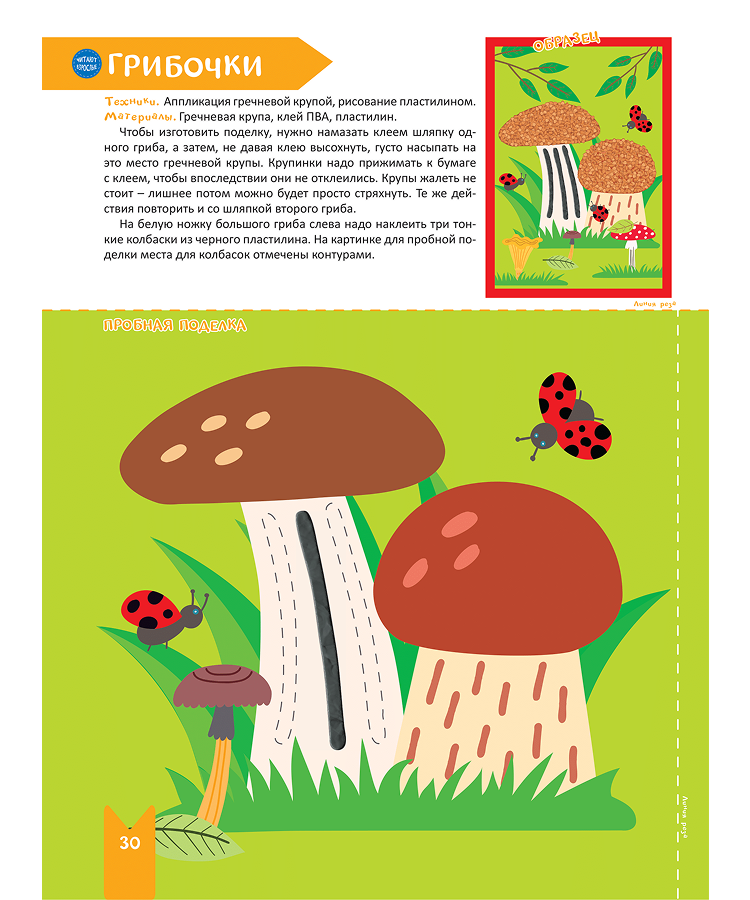 Творческая тетрадь «Мир творчества» предлагает разнообразные шаблоны для творчества, которые включают в себя: • Аппликации для детей с использованием бумаги и круп. Данные техники отлично развивают тактильное восприятие и мелкую моторику. • Аппликации пластилином. • Поделки из бумаги и отпечатки ножек, которые надолго сохранят память о первых творческих успехах. • Техники рисования кисточкой для прорисовки деталей и контуров. Ключевые особенности и преимущества: • Готовые шаблоны для творчества. В книге есть все необходимое — цветные основы и пробные поделки, чтобы ребенок мог потренироваться перед созданием основной работы. • Идеально для возраста 4-6 лет. Простые инструкции делают аппликации для детей 4 лет доступными и интересными. • Всестороннее развитие. Выполнение поделок активно развивают воображение, пространственное мышление, зрительно-моторную координацию и усидчивость. • Подробные пошаговые инструкции и четкий список материалов для каждой поделки экономят время на подготовку. Набор аппликаций для детей сочетает в себе различные материалы и техники. От аппликаций из пластилина до создания фактурных картин с помощью круп — здесь есть всё, чтобы пробудить в ребенке интерес к творчеству.