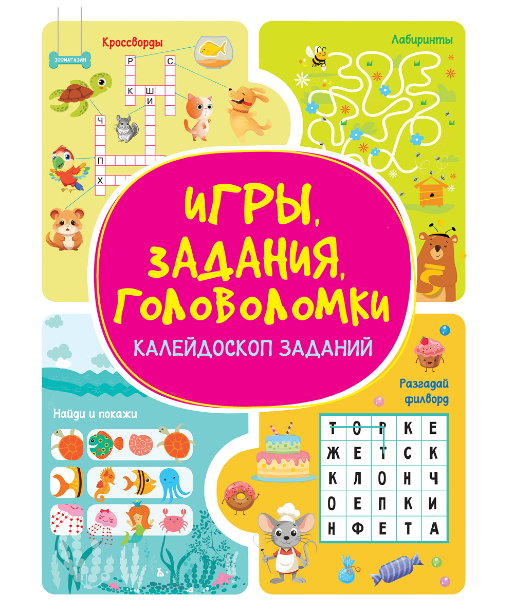 Детская книга «Игры. Задания. Головоломки. Калейдоскоп заданий» — идеальное пособие для развития ребенка, которое сочетает в себе игру и обучение!