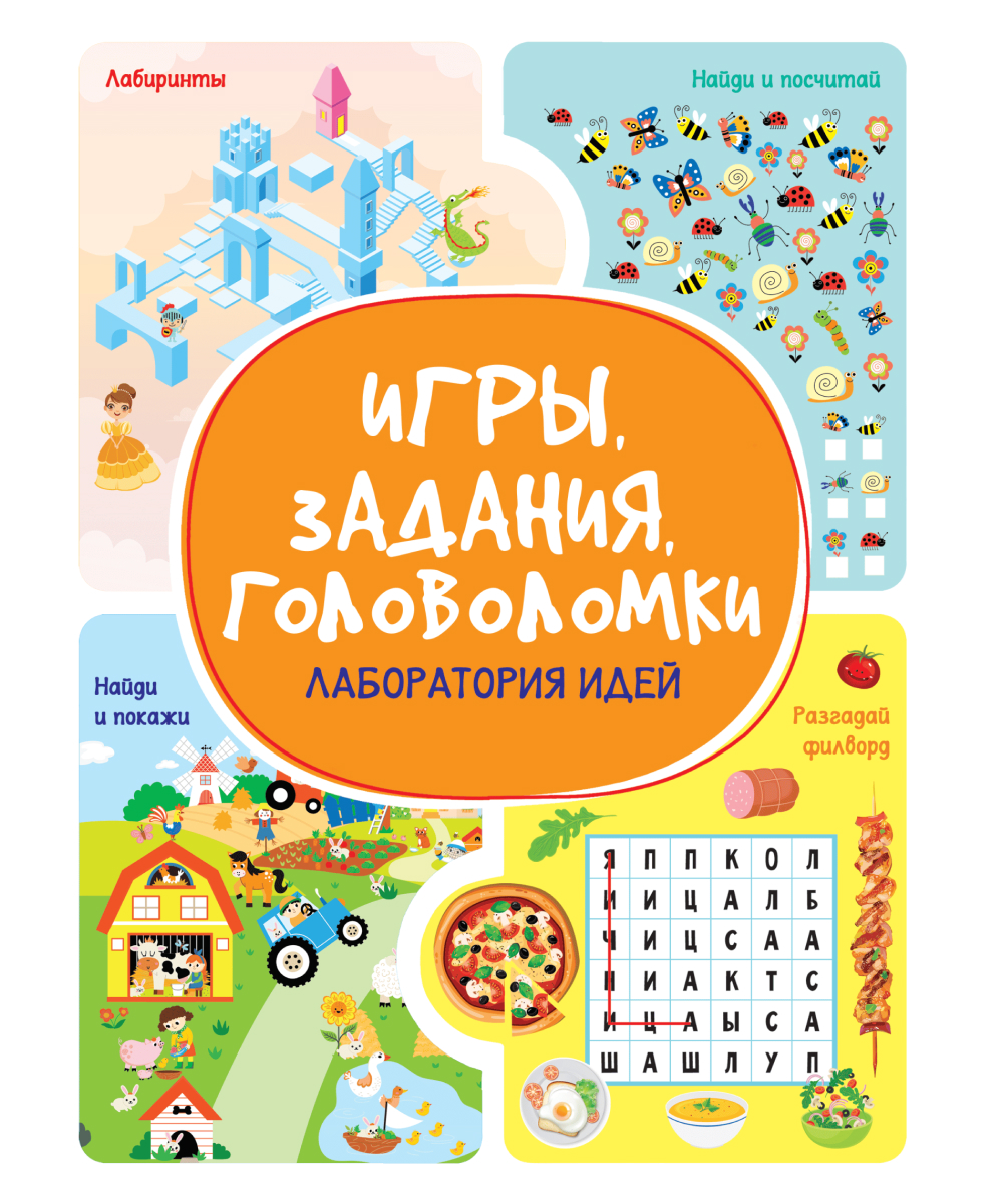 Детская книга «Игры. Задания. Головоломки. Лаборатория идей»  — идеальное пособие для развития ребенка, которое сочетает в себе игру и обучение!