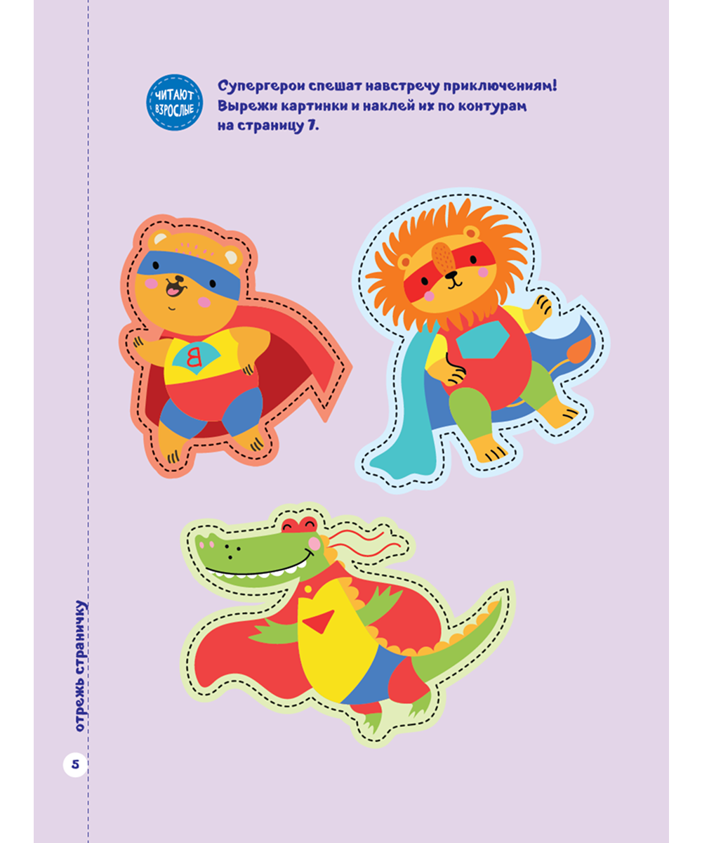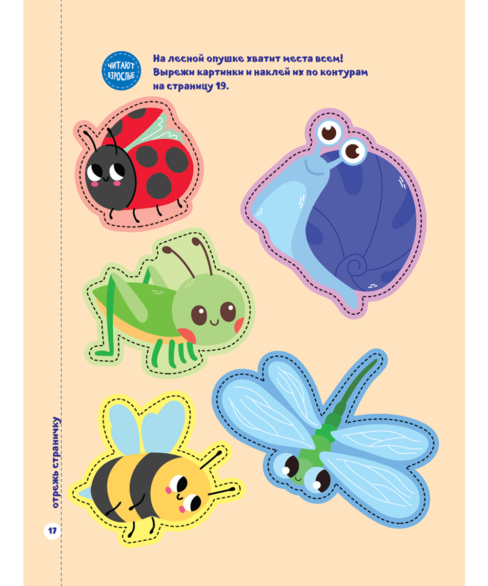 Детская книга «Мои первые вырезалки. Вырезай и клей» — идеальный способ развить творческие навыки и мелкую моторику ребенка. Актуальны будут вырезалки и для девочек, и для мальчиков от 5 лет. На каждой странице предусмотрена пунктирная линия для занятий с отдельным листочком.